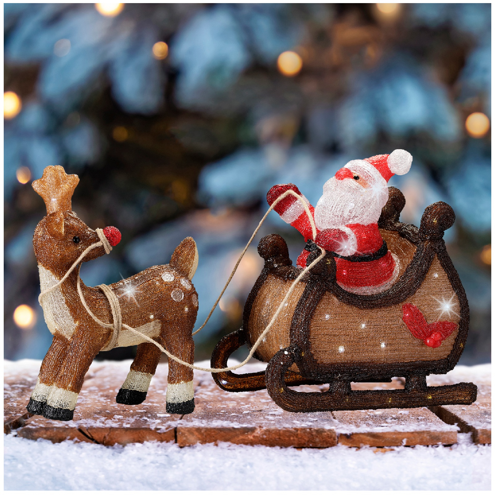 Model: Decoratiune Craciun model Sanie cu ren si Mos Craciun pentru exterior