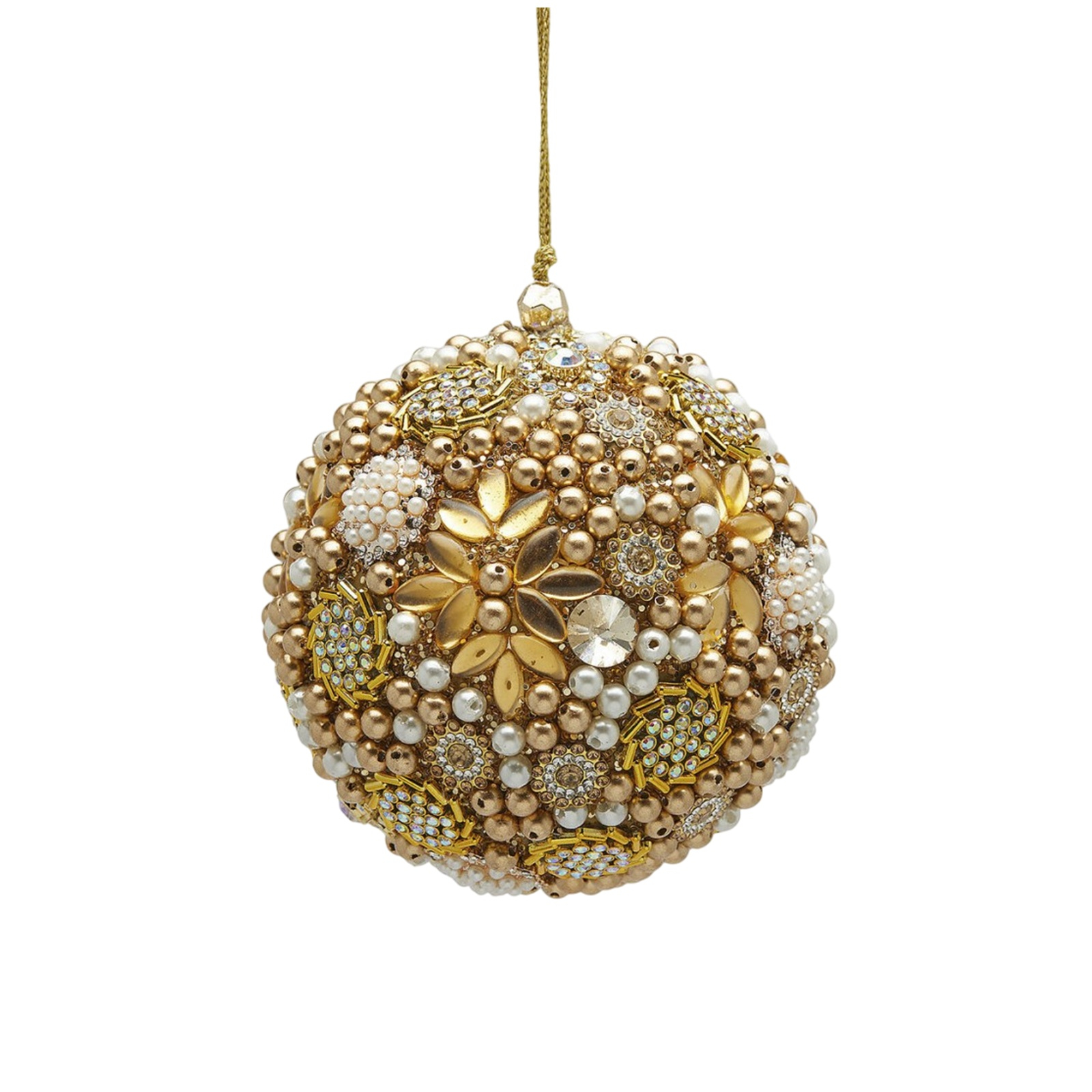 Glob brad Craciun cu perle si paiete, 10 cm, auriu