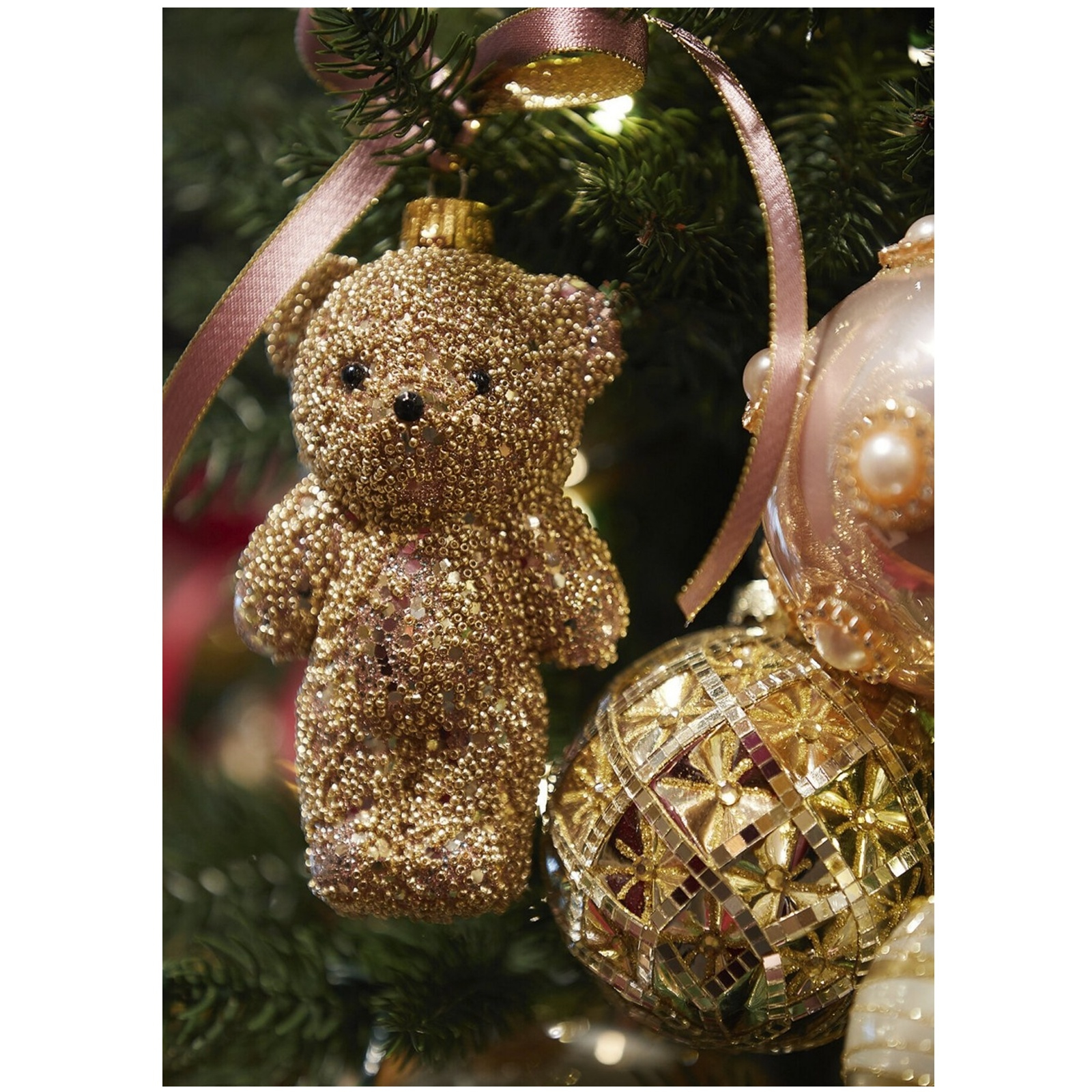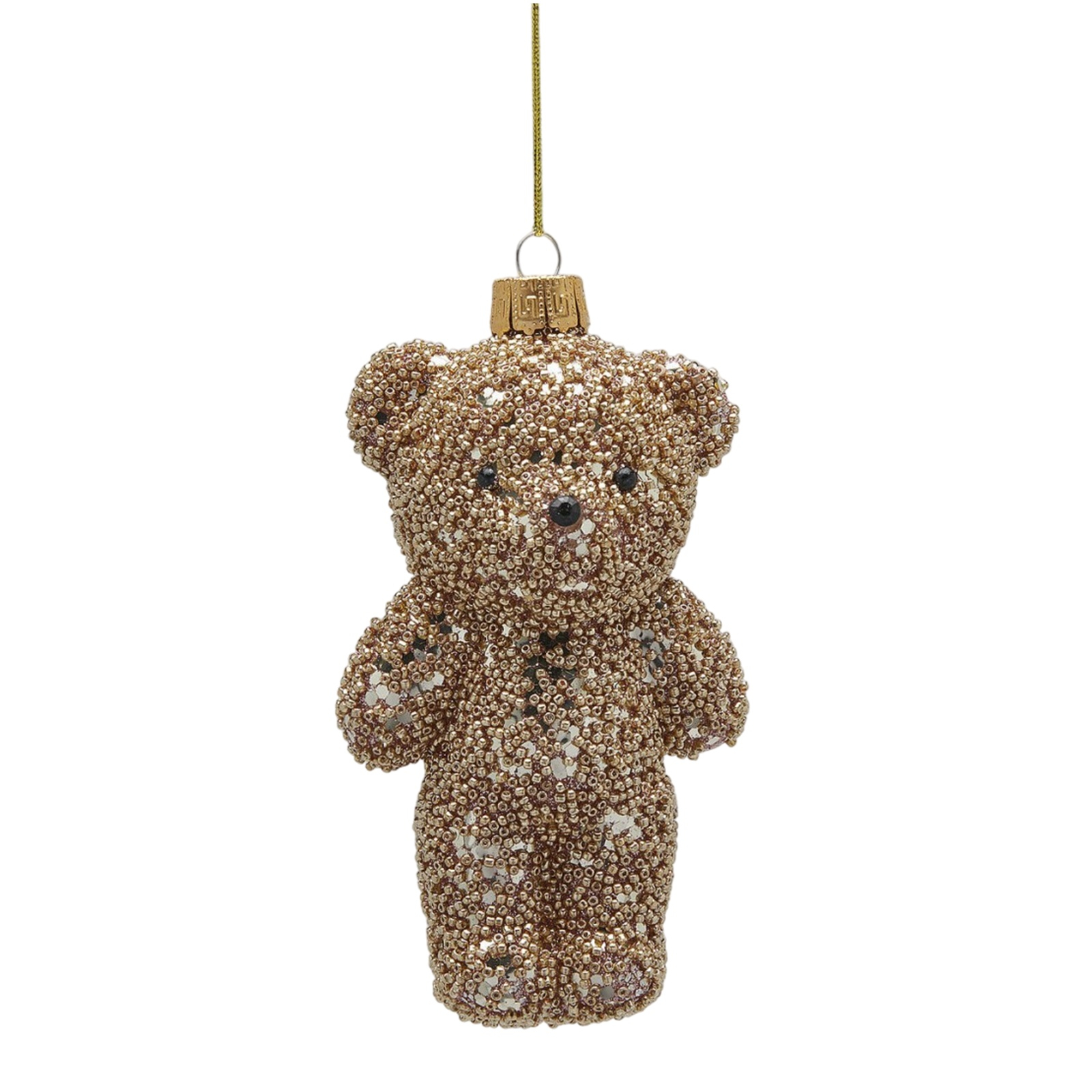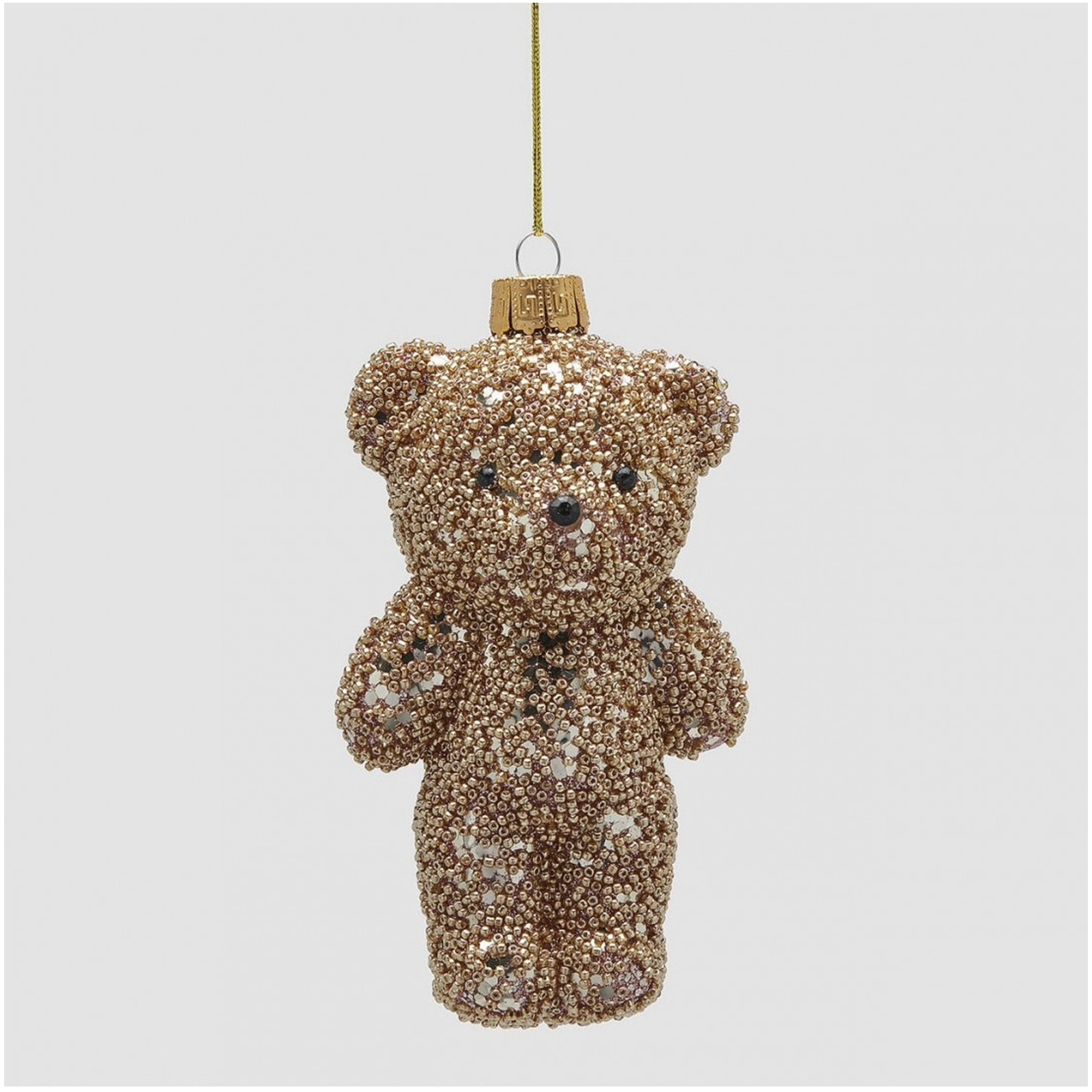Glob brad Craciun model Ursulet, 14 cm, auriu