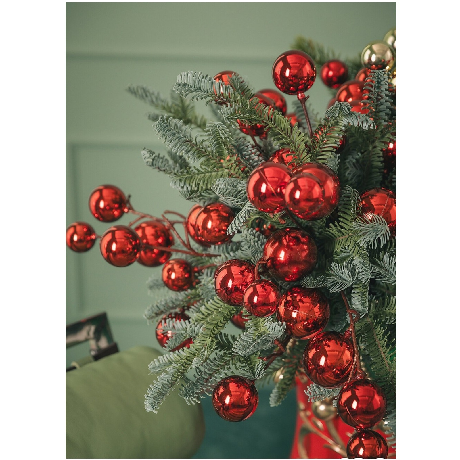 Decoratiune brad ramura cu mix de bile, 53 cm, rosu