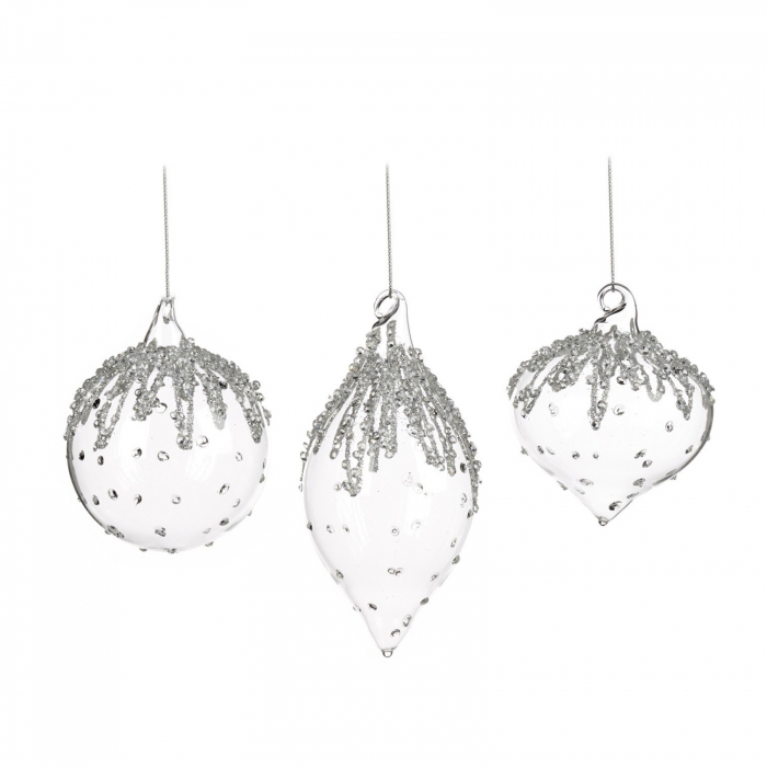 Set 3 globuri brad Craciun Winter Dream, 8 cm, transparent