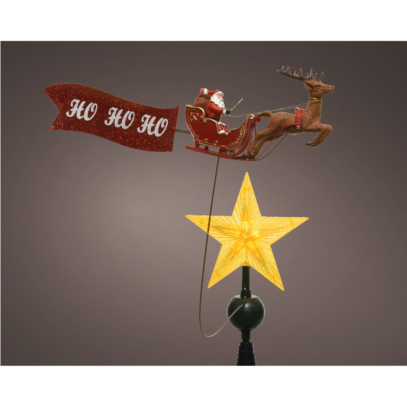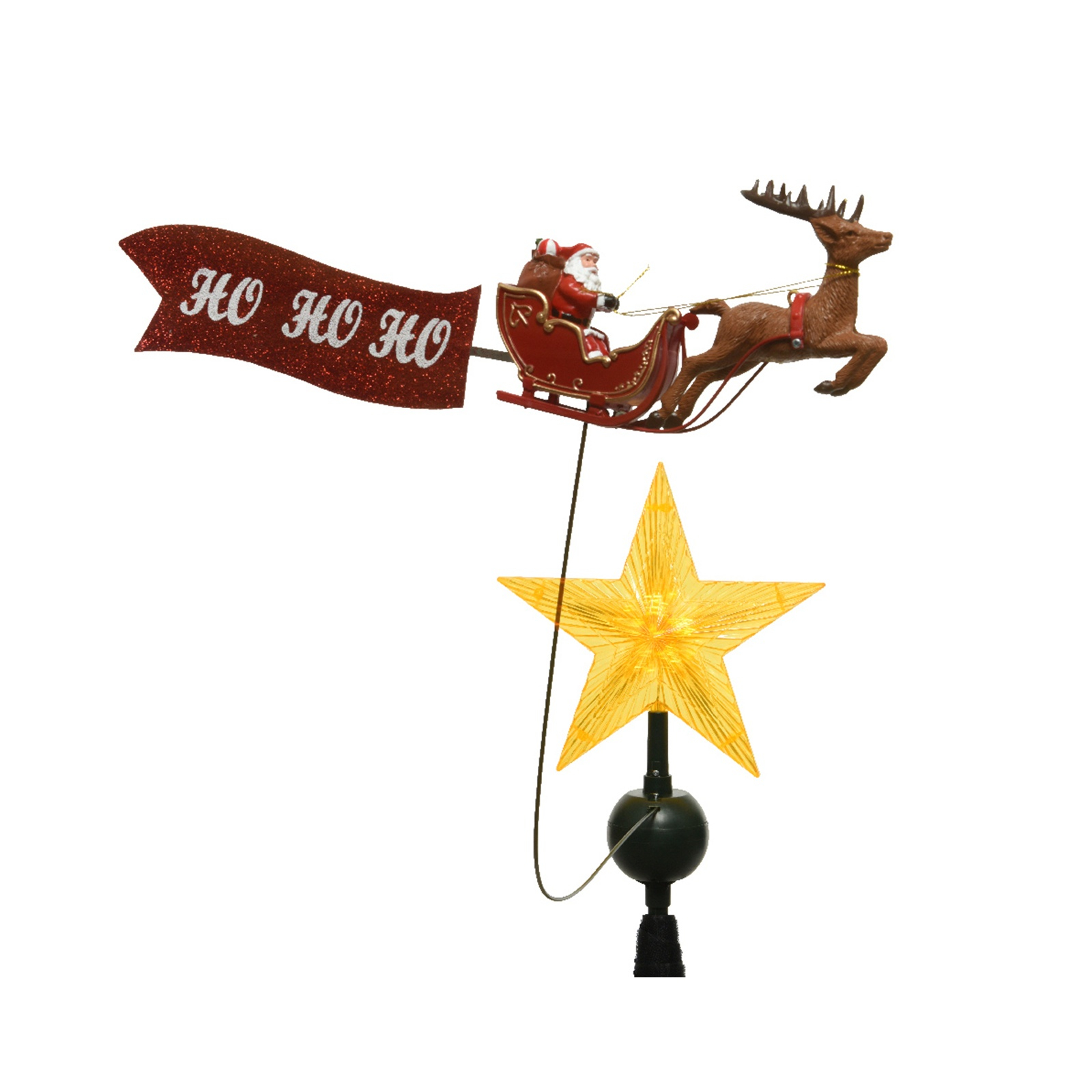 Varf de brad rotativ cu Stea si Mos Craciun in sanie, 41x41x54 cm